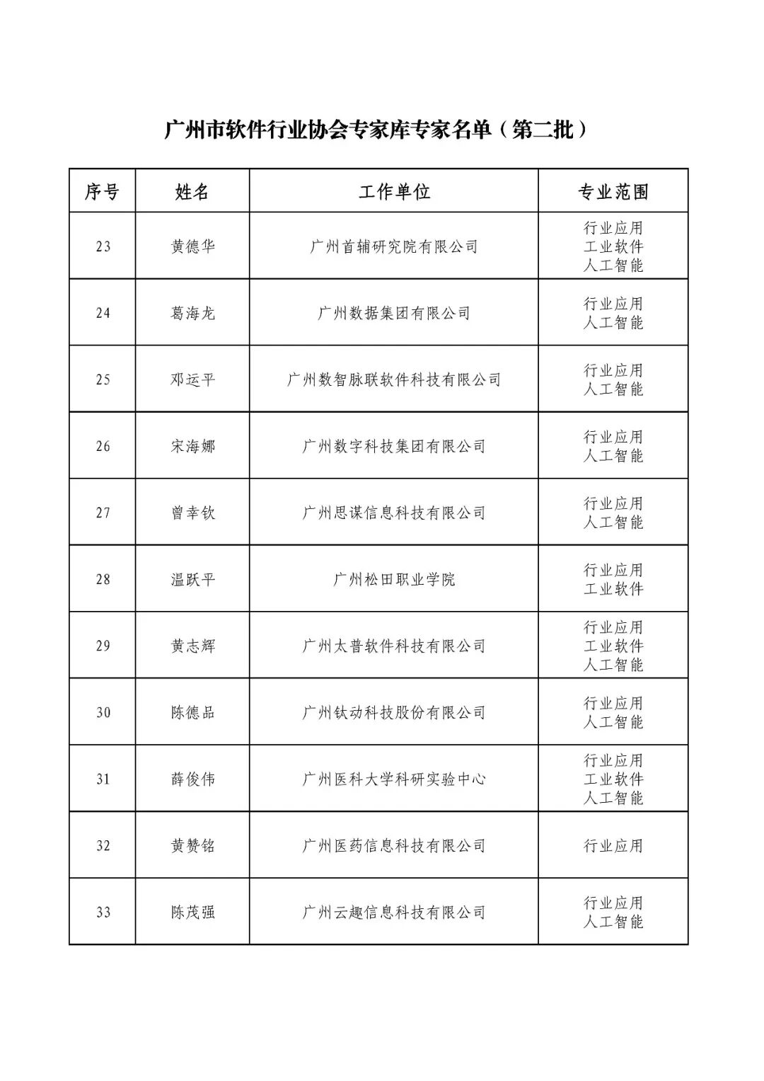 关于广州市软件行业协会专家库专家名单(第二批)的公告